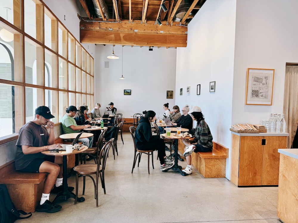 Cafe Telegrama is the LA art world’s answer to New York’s Odeon power lunch. Swap the espresso martinis and French onion soup for matcha lattes and breakfast burritos, and the white tablecloths and model waiters for counter service and artist-barista-skaters, and there you have it. X marks the spot here at Melrose Hill’s meeting ground for collectors, dealers, and advisors. Yes, I’m speaking in clichés, but it comes from a place of love and self-identification.