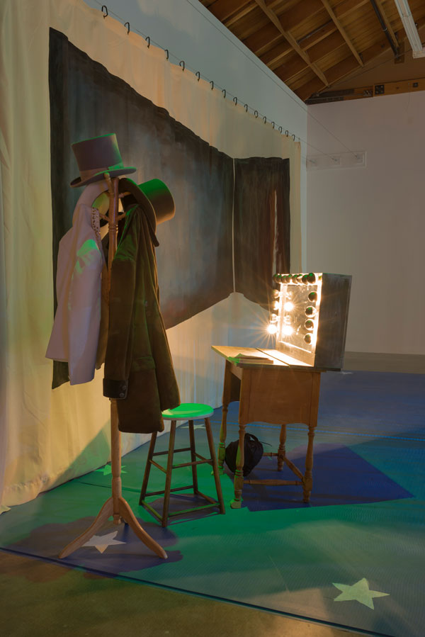 Arceneaux restages the performance given by Vereen for the Reagan inaugural but includes the truncated coda (edited and excised like much of black history), a rejoinder of defiance, uplift and pathos against the preceding minstrelsy. His redemptive strategy upended, Vereen seemed to further hallmark the degradative association; Arceneaux amends the record. Projected on a scrim, viewable from both sides and accompanied by backstage theatrical props, it is an enveloping and affecting experience.
