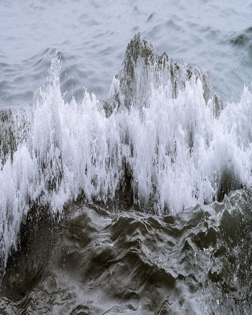At Flowers Gallery, a few Nadav Kander images of abandoned Soviet-era monuments in places like Kazakhstan resonate in their power with Evangelidis’ architectural studies seen earlier. Across the walkway, Riverside-based photographer Amir Zhaki has a very large photograph made at a very high speed of a crashing wave looking more like an ice-bound mountain or an Artic glacier beginning to melt. Next door, at Equinox, is recently re-printed color photography done by Fred Herzog in the 1950s. Whereas Todd Hido’s current work is evocative because it looks like faded work from the 70s, Hido’s even earlier work now has the lush color it would have when first printed, 50-plus years ago.