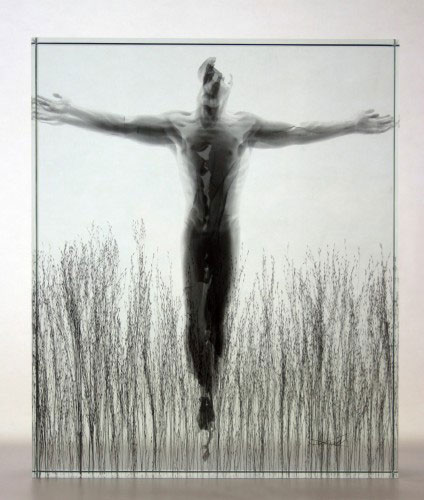 Stage 31 next door is closer to Stage 14 in the sense it summons of photography as both a contemporary art form and an historical medium. Just inside the entrance is Ingleby Gallery, from Edinburgh. The material on view is all about current experiments with process. These range from Ben Gauchi’s work in 19th-century types, including the ambrotype (a kind of daguerreotype on white glass) and the Civil-War era tintype, to the images of Garry Fabian Miller and Susan Durges, whose work is done to very different effect with what is called the “dye destruction print.” Adjacent to Ingleby is Paci, from Trieste, whose solo show is of Michal Macku’s 3-D work in “glass gellage.”