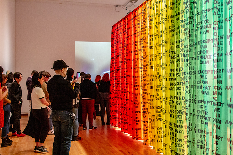 Installation view of Jeffrey Gibson: Like a Hammer at the Seattle Art Museum. © Seattle Art Museum. Photo: Natali Wiseman.