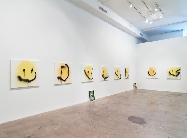 Of all the series, the smiley face emoji pictures are most Instagram-friendly, in a from-whence-it-came sort of way. With grabs at Pop art as well as smartphone cultural linguistics, the series eschews the pristine perfection of digital design and injects a wavering variability into the glowing mostly yellow central orbs, blotchy eyes and cryptic mouths. Out of context, those seasick lines would not read as wide eyes or crooked smiles; the premise requires the intentionality of the reference to make its point. “End of Life Face” for example, projects an opium dreamstate; “Inner Face” a slack stack of muddled features; and “Inner” a psychological surreal.