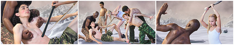 AES +F, The Last Riot (2005 – 2007) 3 channel video installation, courtesy Young Projects.
